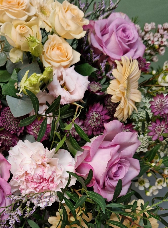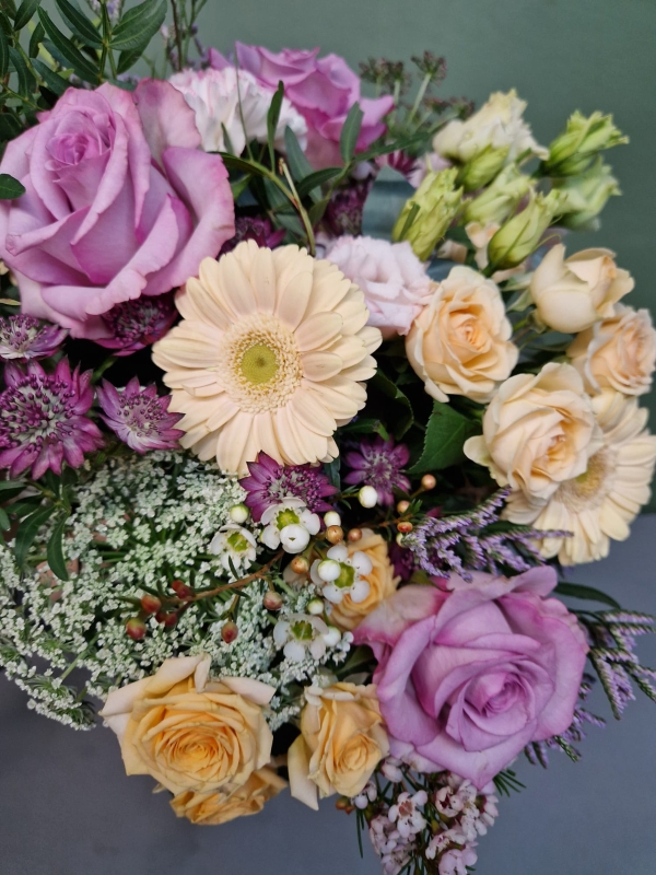 Pretty colours and soft pastels come together in this beautiful bouquet, designed to express your love in a beautifully romantic way.